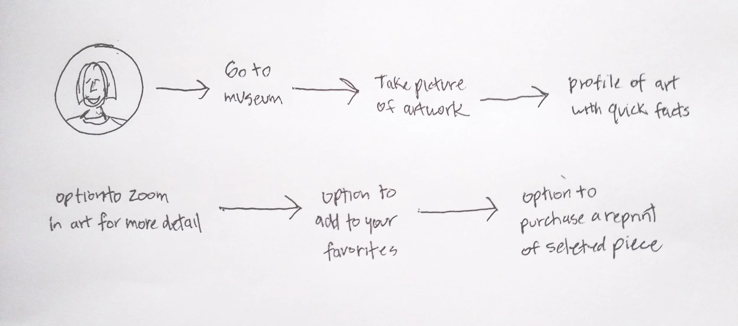 Ensure I addressed the HMW’s. How might we let people experience the art when it is too crowded to get close to it? Taking a picture allows you to learn about the artwork from afar. And How might we get concise information about the art without pouring through long articles? I wanted the user to have knowledge in layers with quick facts with the option to go into more detail about the artwork.